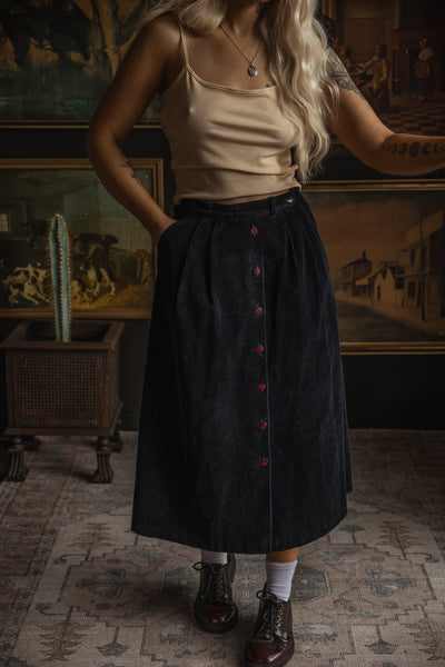 1970s Cord Midi Skirt - Midnight