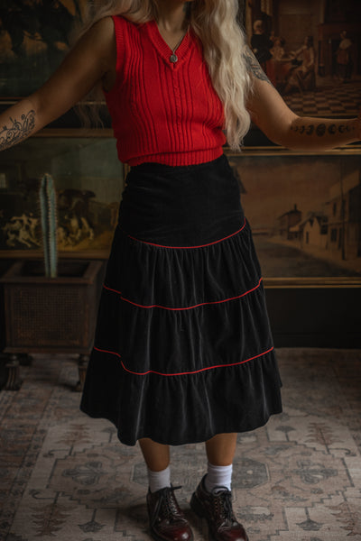 1970s Velvet Midi Skirt - Sangria/Black