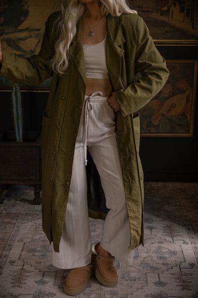 1990s Linen Coat - Moss