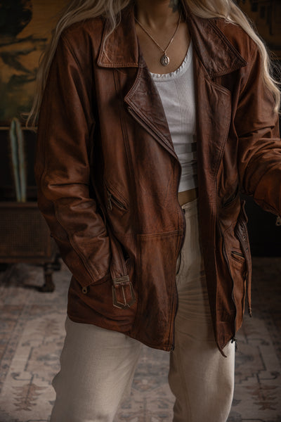 1980s Leather Cartel Jacket - Washed Black