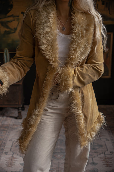 1990s Faux Fur Cord Coat - Warm Oat