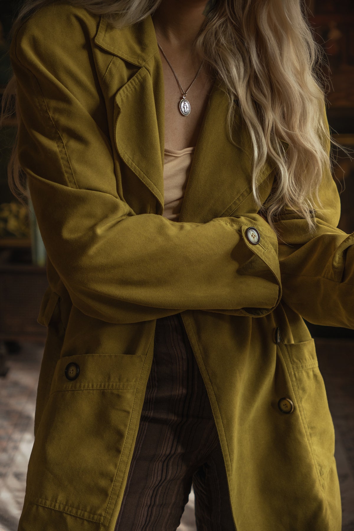 True colour is slightly greener in person, most accurate colour depicted on hanger.