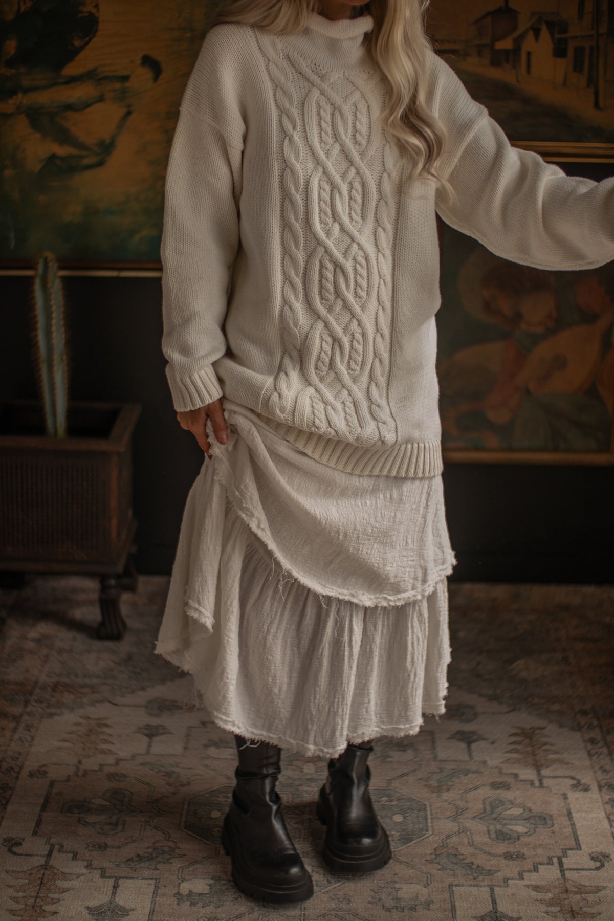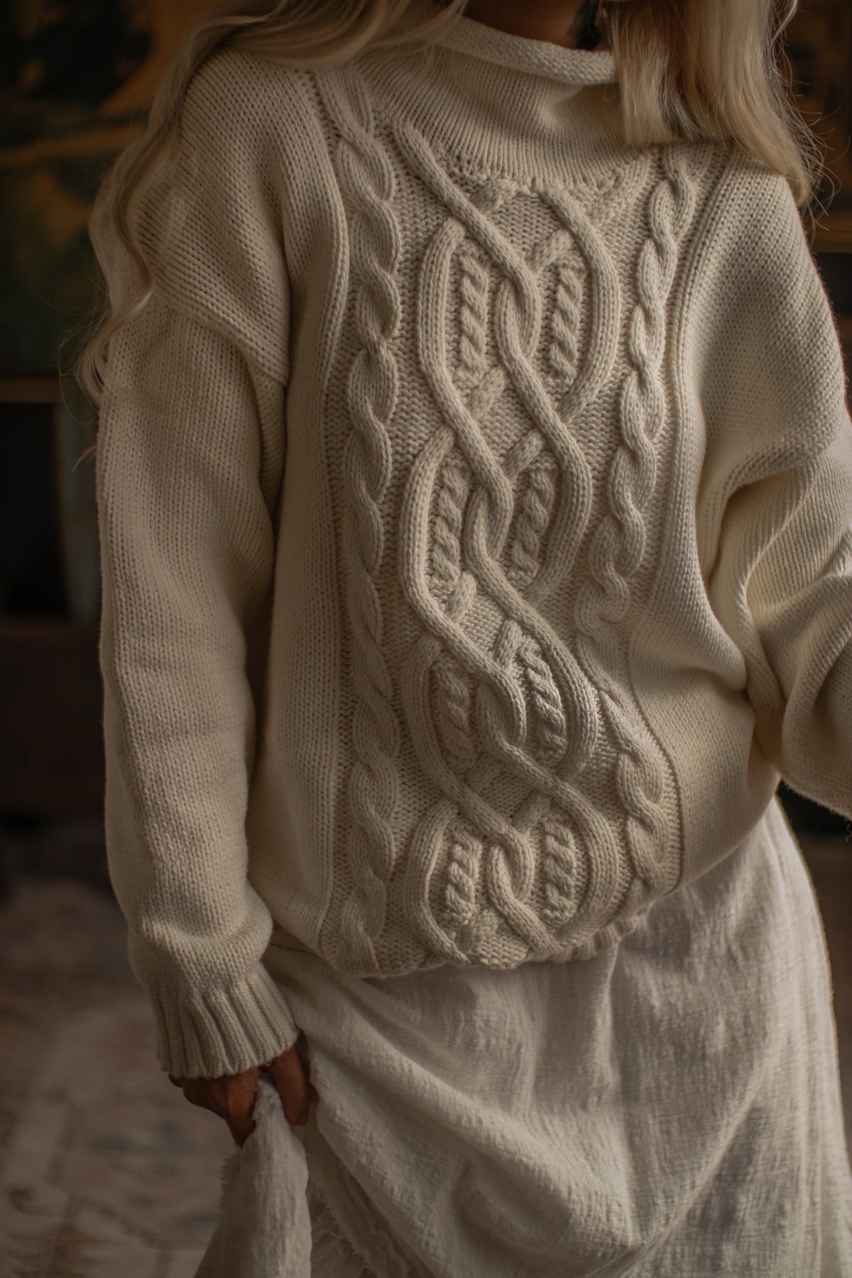 1990s Longline Cable Knit - Milk
