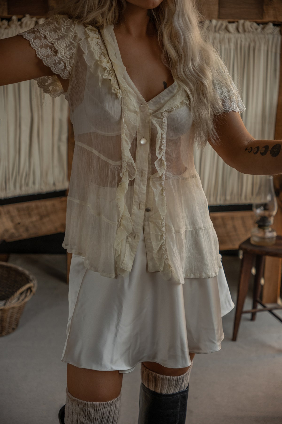 Silk Ruffle Blouse - Buttermilk
