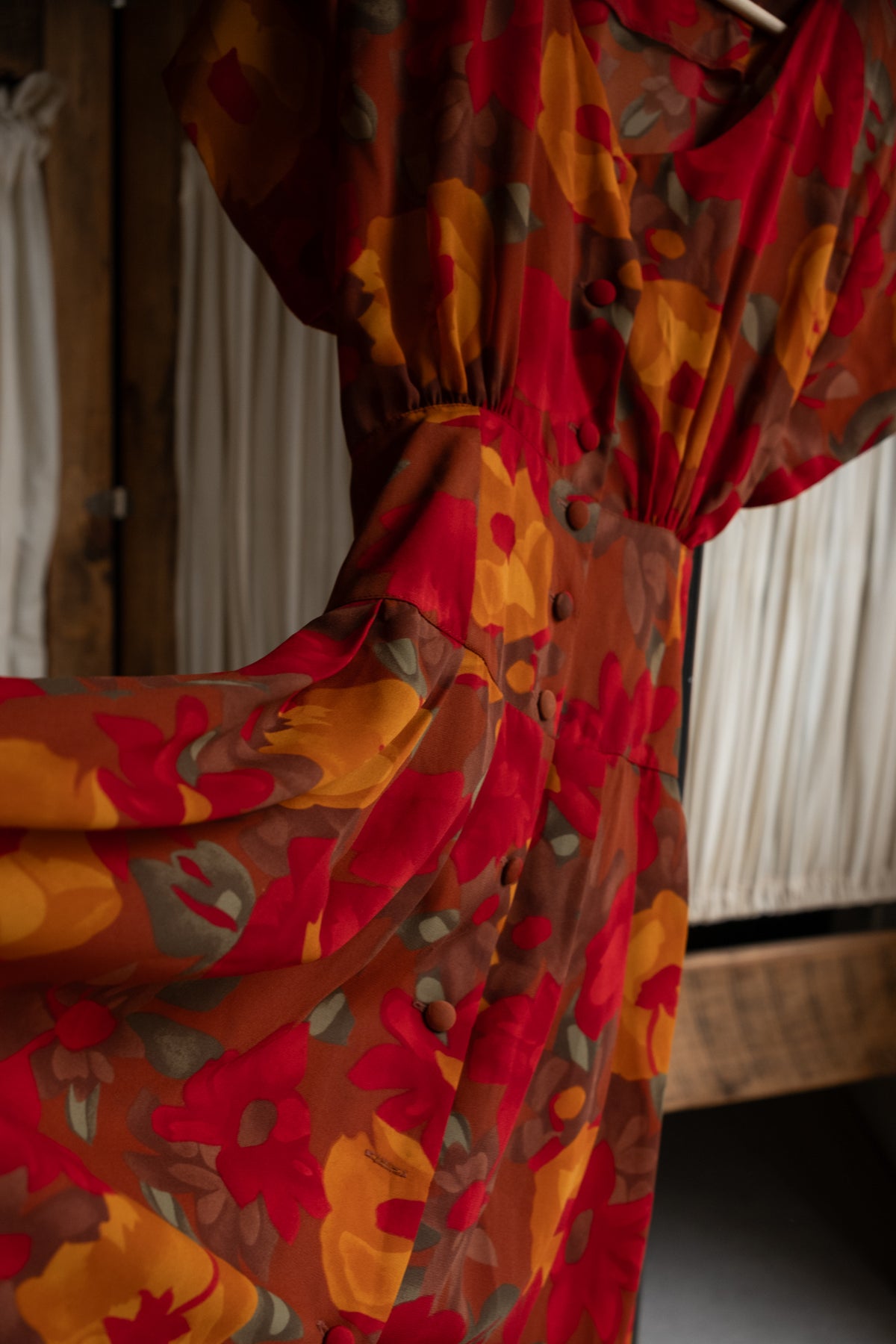 • Dimension: Shoulders 42cm, Bust 40cm, Waist 32cm, Seat 44cm, Length 99cm