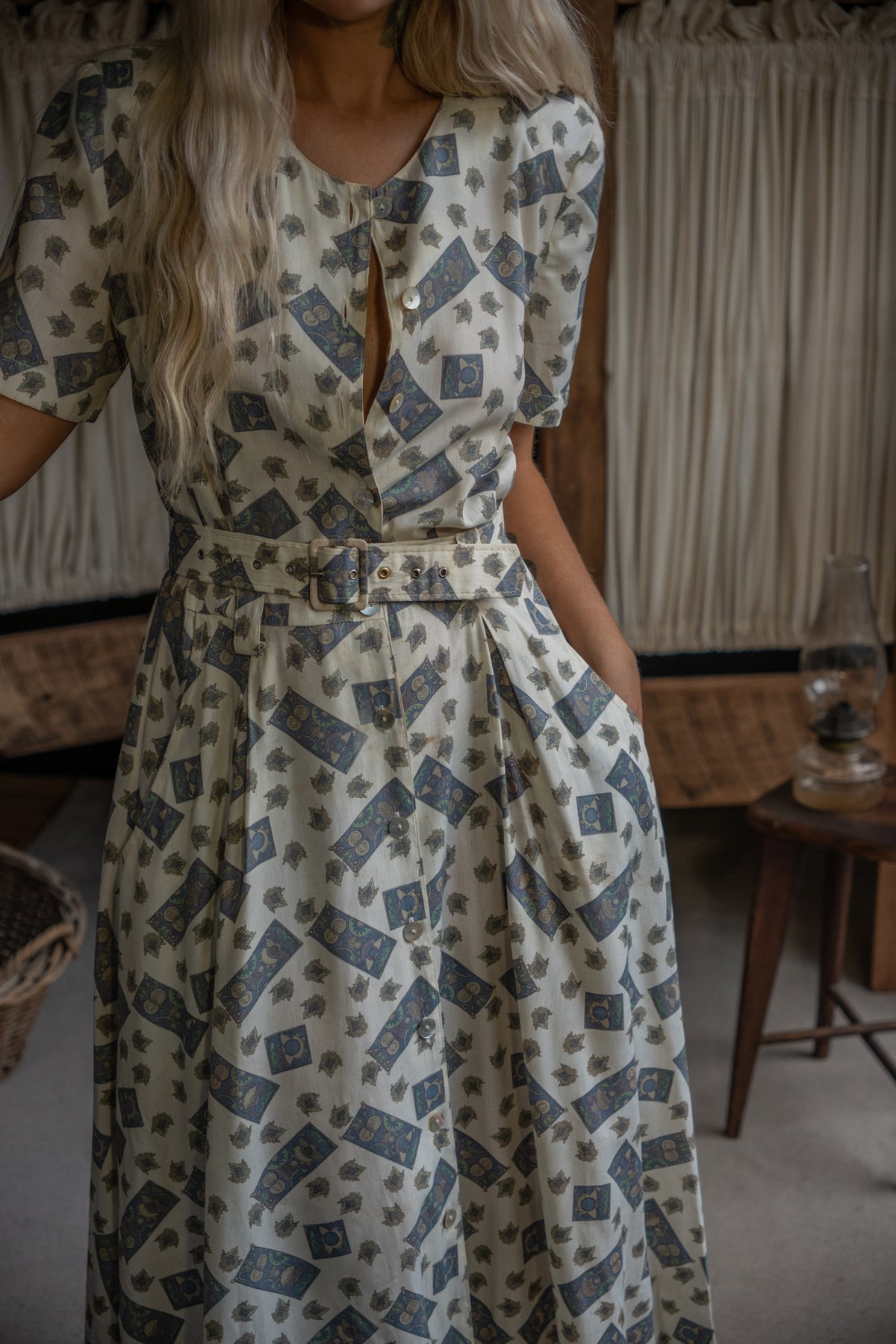 • Dimension: Shoulders 37cm, Bust 39cm, Waist 32cm, Seat 47cm, Length 124cm