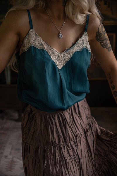 Vintage Silk Slip Top - Bondi Blue